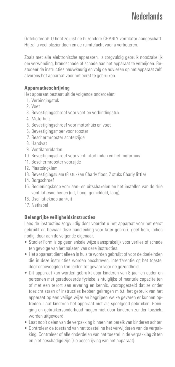 GEBRUIKSAANWIJZING Charly STADLERFORM