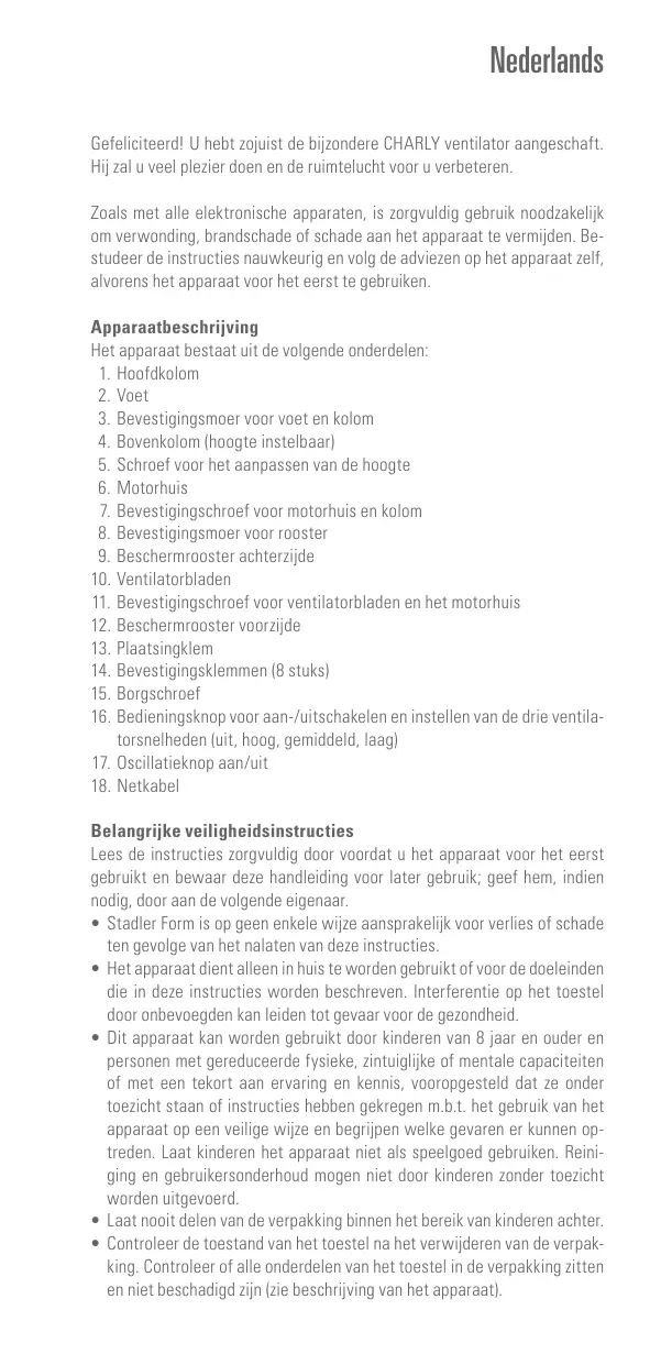 Charly Stand K - Ventilator STADLER FORM - Gratis gebruiksaanwijzing en handleiding