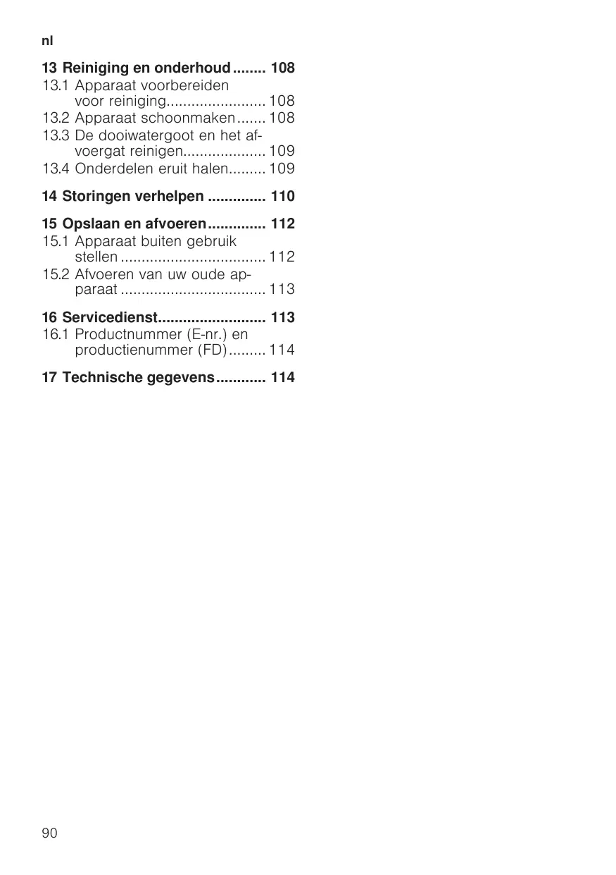 13.2 Nettoyage de l’appareil 53 13.3 Nettoyer la rigole à eau de dégivrage et le trou d'écoulement 53 13.4 Retirer les pièces d’équipement 54 14 Dépannage 55 15 Entreposage et élimination 58 15.1 Mise hors service de l’appareil 58 15.2 Mettre au rebut un appareil usagé 59 16 Service après-vente 59 16.1 Numéro de produit (E-Nr) et numéro de fabrication (FD) 60 17 Caractéristiques techniques ... 60 ¡ pour un usage privé et dans les pièces fermées d’un domicile. ¡ à une hauteur maximale de 2000 m au-dessus du niveau de la mer.