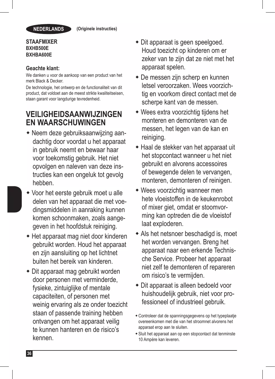 BXHB500E - Staafmixer BLACK & DECKER - Gratis gebruiksaanwijzing en handleiding