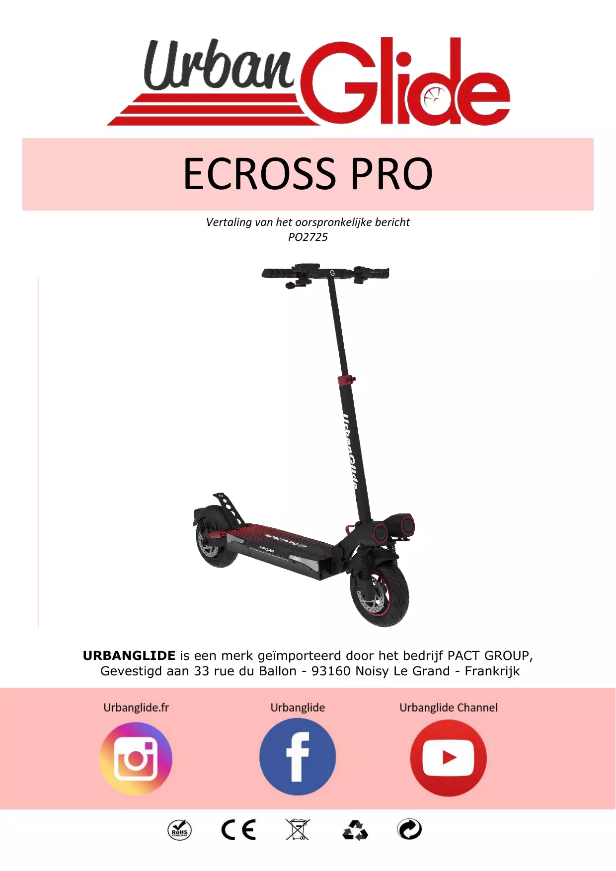 Download de handleiding voor uw Elektrische step in PDF-formaat gratis! Vind uw handleiding CrossPro13AH - URBANGLIDE en neem uw elektronisch apparaat weer in handen. Op deze pagina staan alle documenten die nodig zijn voor het gebruik van uw apparaat. CrossPro13AH van het merk URBANGLIDE.