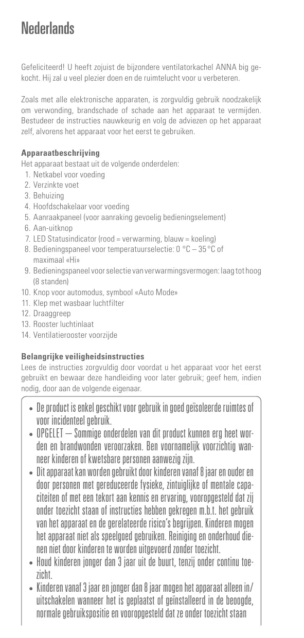 BIG BLANC - Verwarming ANNA - Gratis gebruiksaanwijzing en handleiding