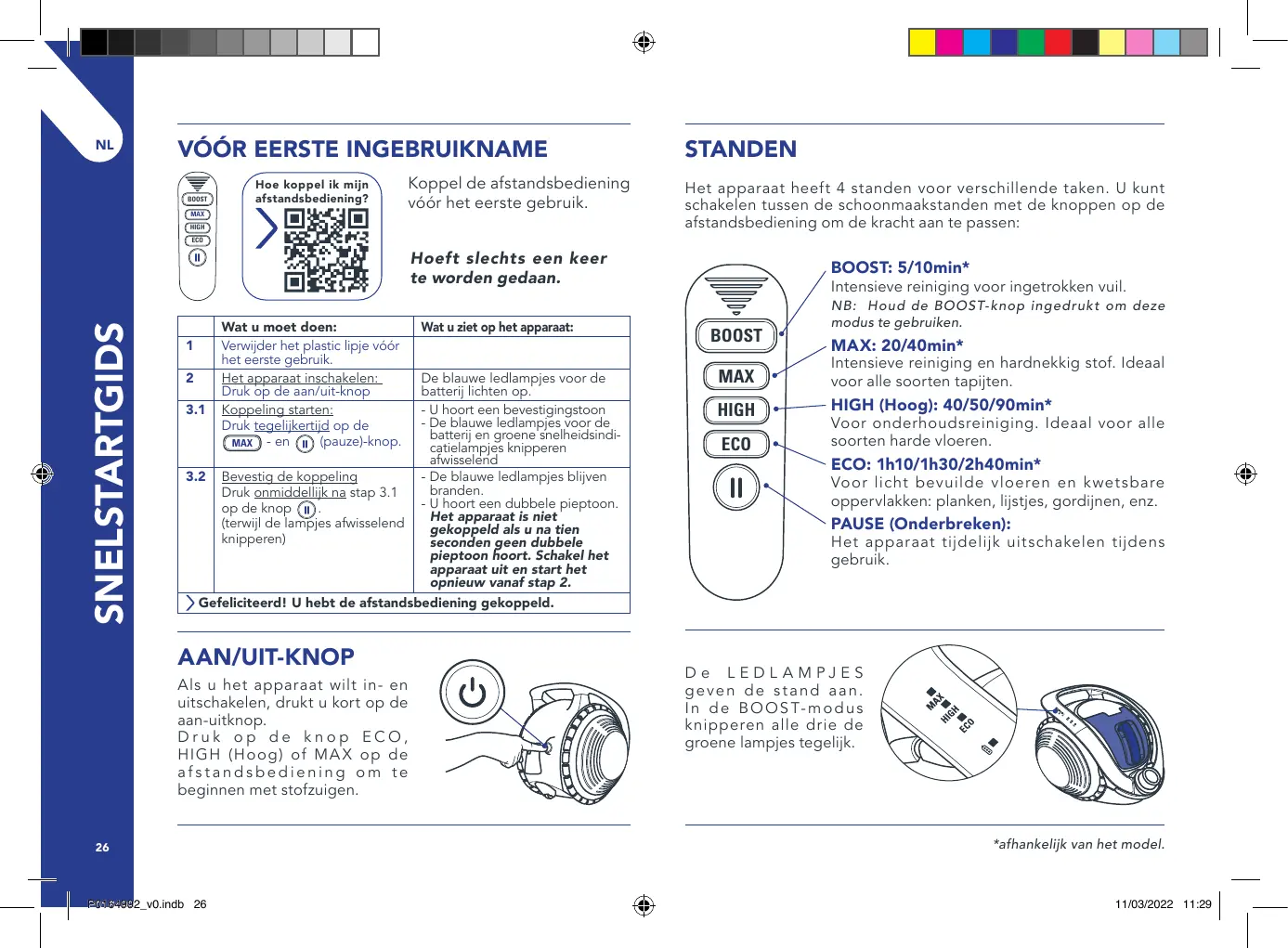 Votre appareil dispose de 4 modes de puissance. Changez le mode de nettoyage en utilisant votre télécommande et en ajustant la puissance.