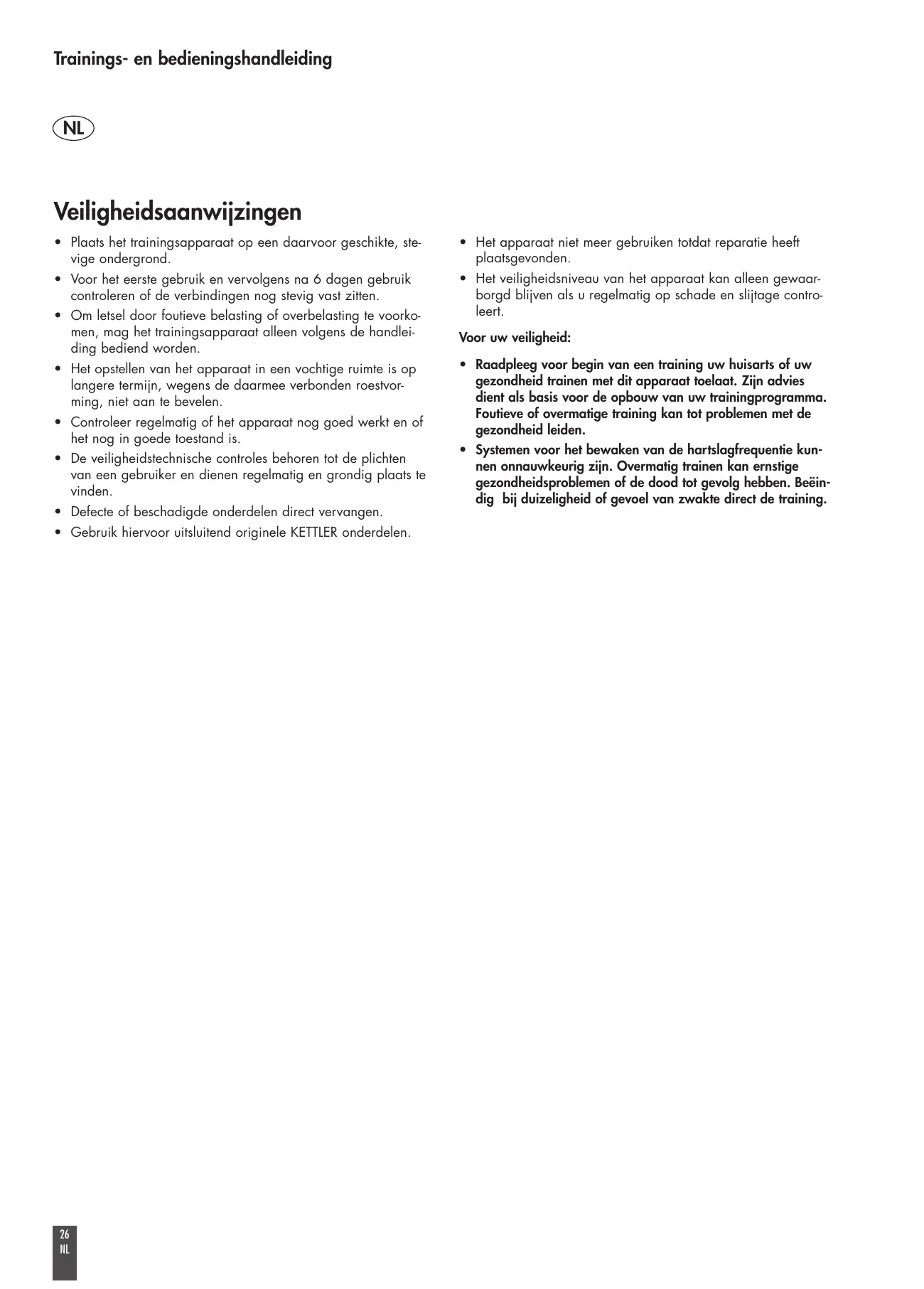 • L’exploitant est tenu de procéder à des contrôles techniques de la sécurité régulièrement et en bonne et due forme. • Les pièces défectueuses ou endommagées doivent être immédiatement remplacées. • Veuillez n’utiliser que des pièces de rechange d’origine KETTLER.