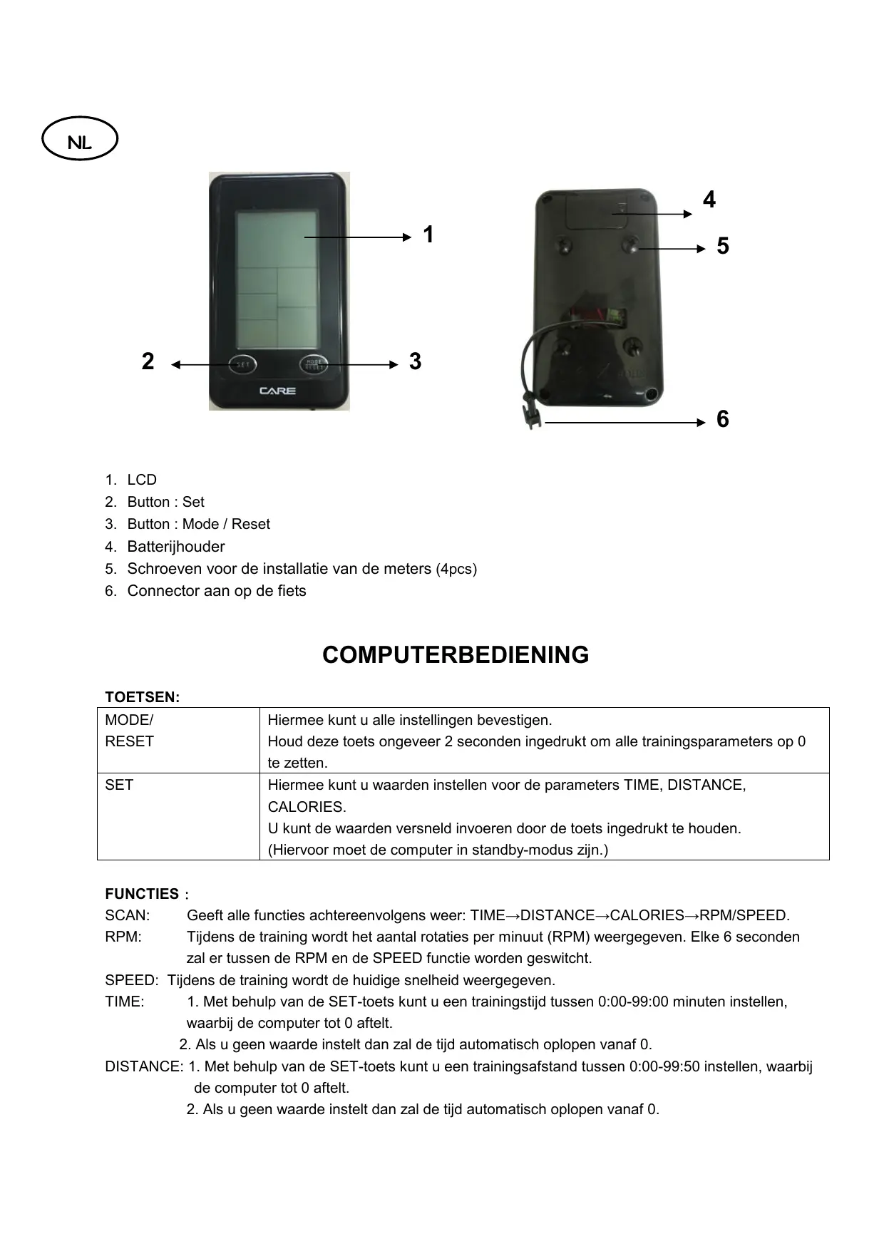 GEBRUIKSAANWIJZING Racer XPR CARE FITNESS