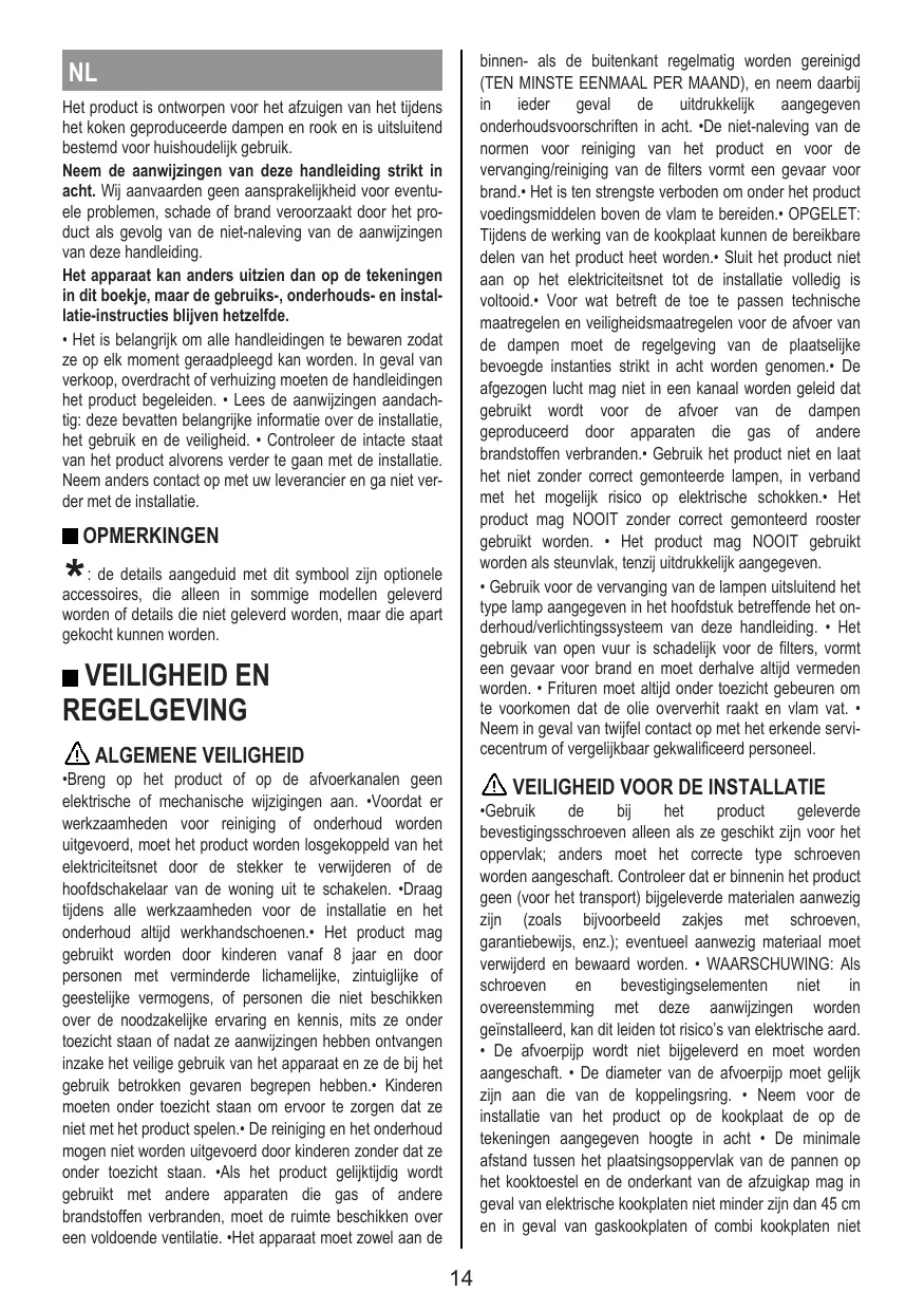 FR Le produit est conçu pour l’aspiration des fumées et des vapeurs de cuisson et est destiné au seul usage domestique.