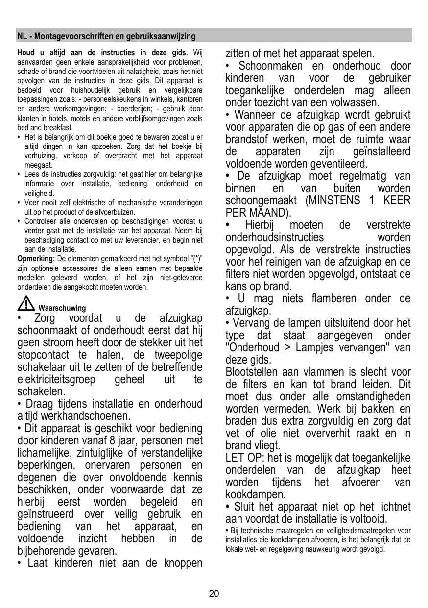 NL - Montagevoorschriften en gebruiksaanwijzing