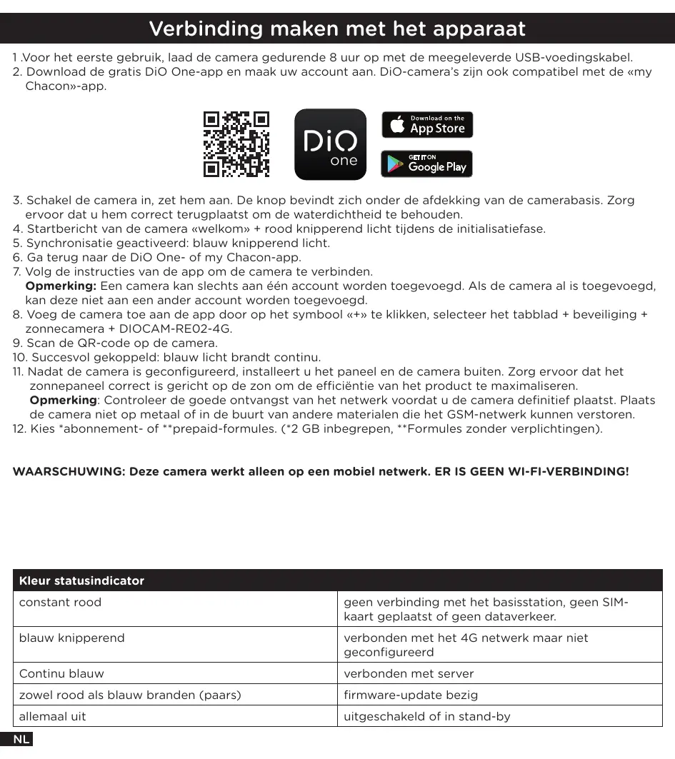 GEBRUIKSAANWIJZING DIOCAM-RE02-4G motorisée 2K avec panneau solaire CHACON