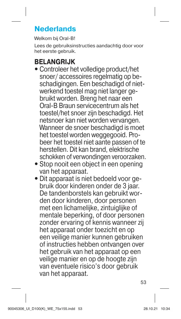 Vind de handleiding van het apparaat gratis Vitality 100cross ORAL-B in PDF-formaat.