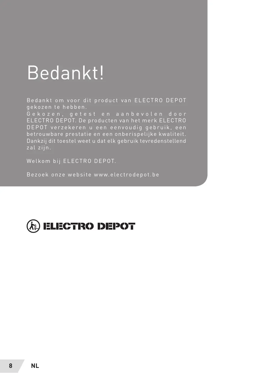 Bedankt om voor dit product van ELECTRO DEPOT gekozen te hebben.