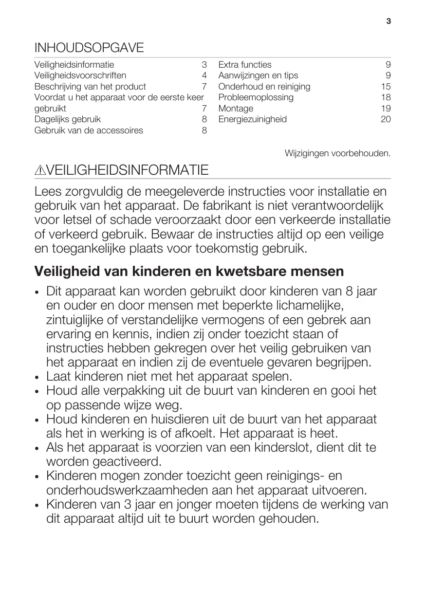 | Veiligheidsinformatie | 3 | Extra functies | 9 |