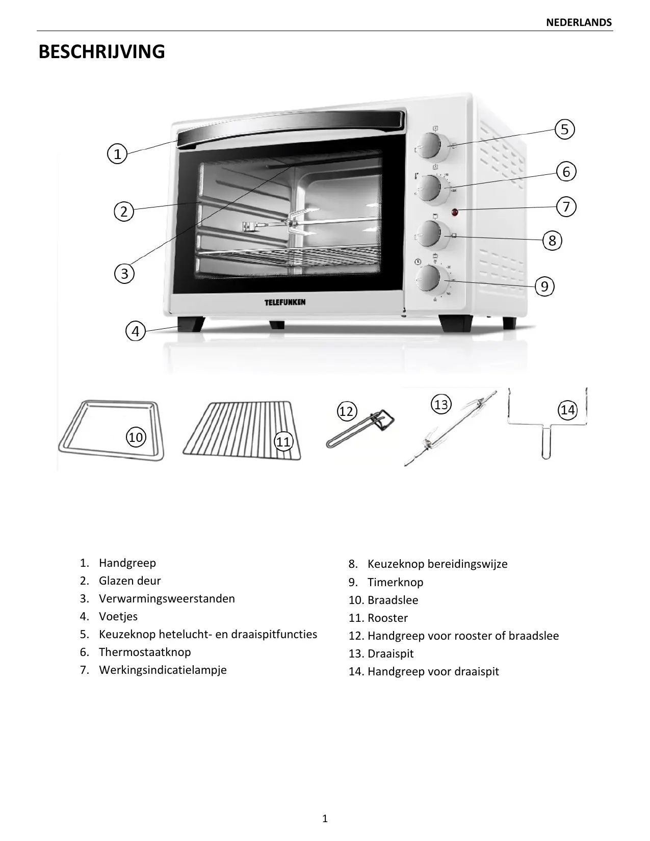 Bij zware schotels worden aanbevolen een ovenwant inplaats van de handgreep te gebruiken om uw schoteluit de oven te halen.