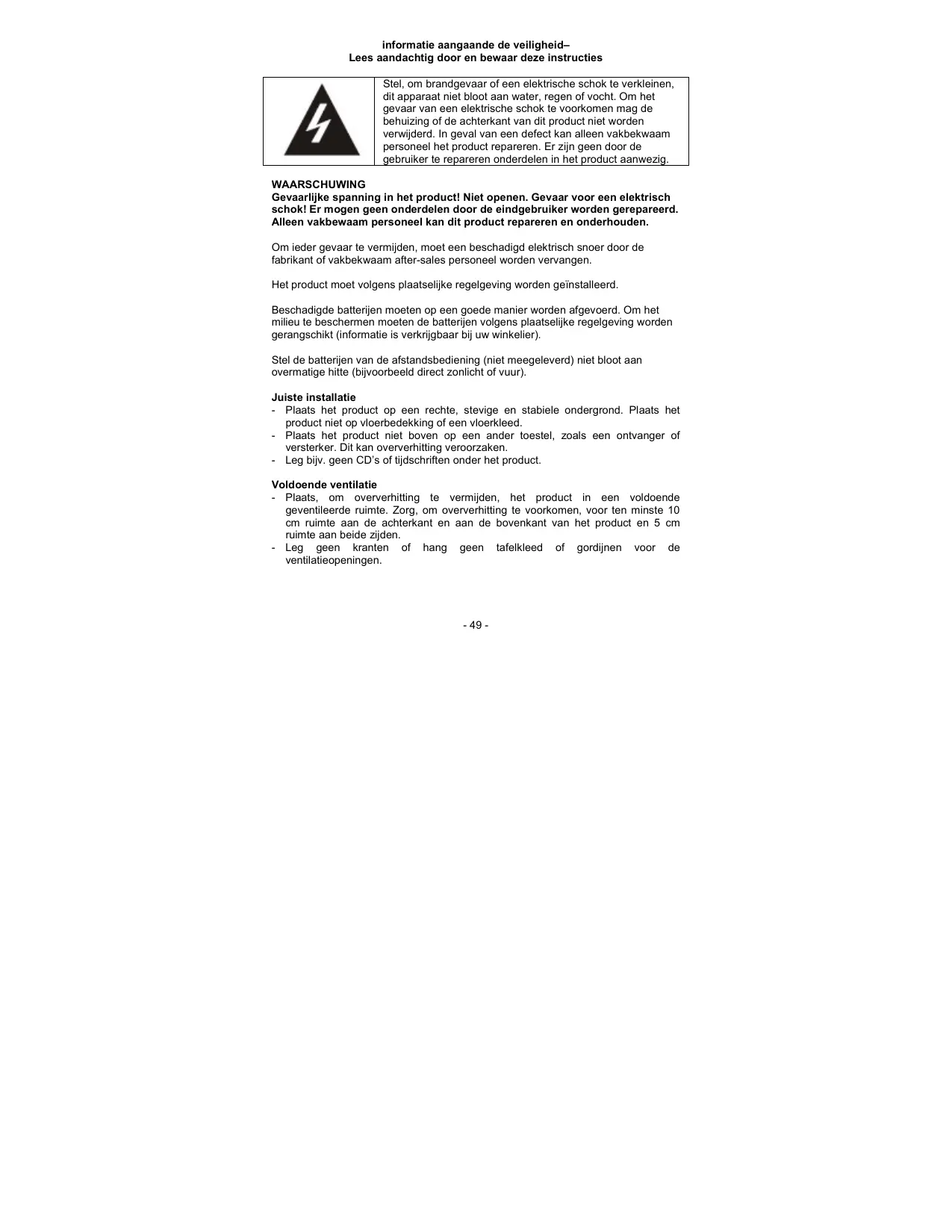 informatie aangaande de veiligheid- Lees aandachtig door en bewaar deze instructies