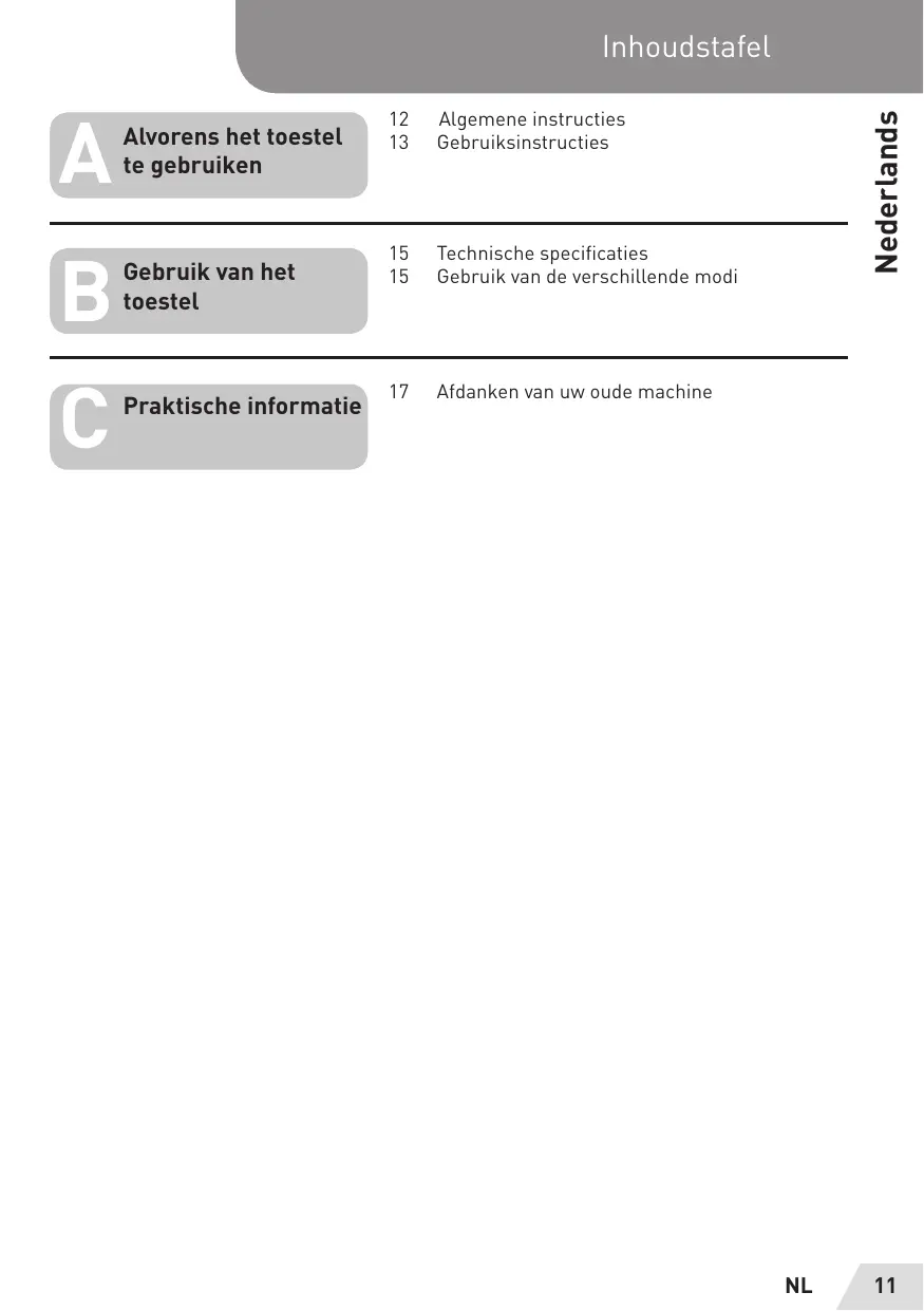 Inhoudstafel 12 Algemene instructies ] Alvorens hettoestel 13 Gebruiksinstructies 2 te gebruiken œ