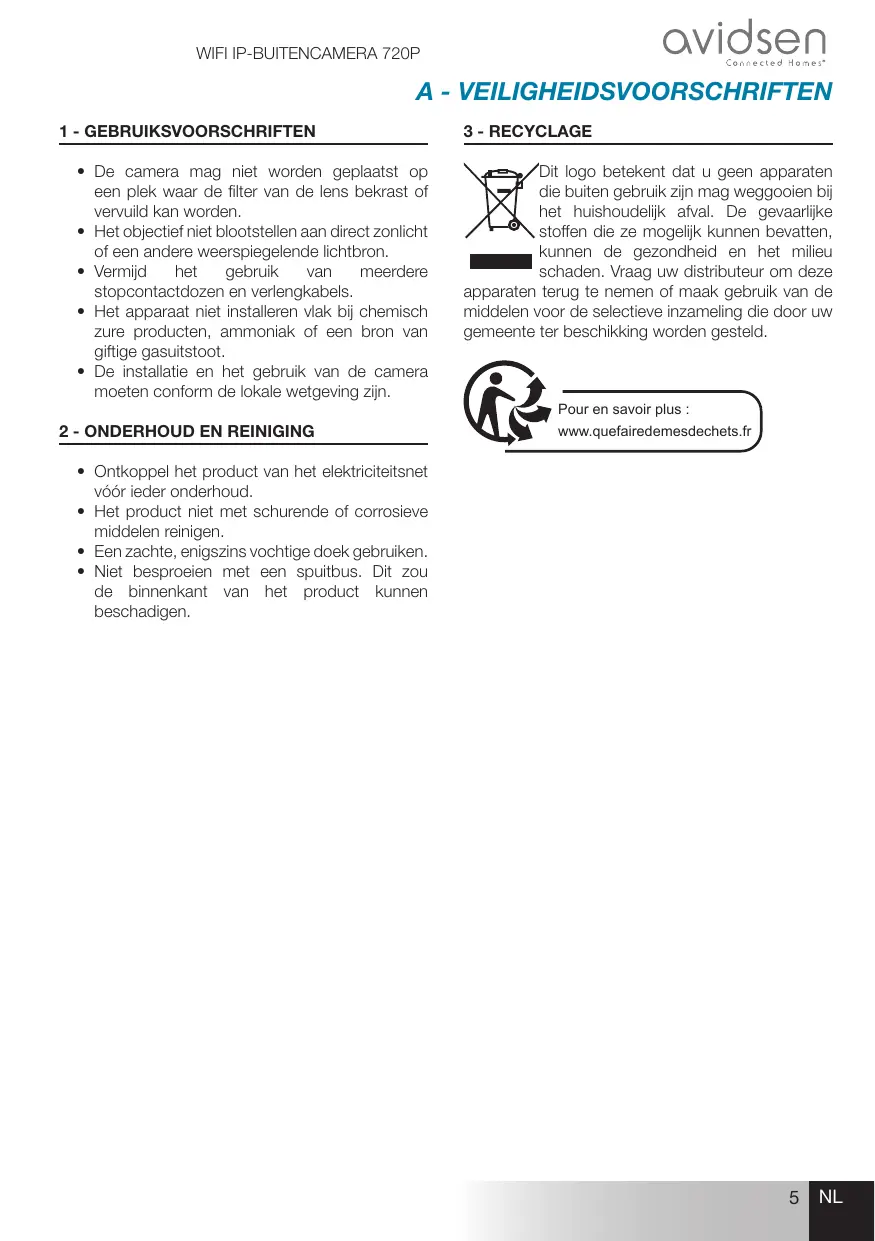 GEBRUIKSAANWIJZING FIXE EXTERIEURE WIFI HD AVIDSEN