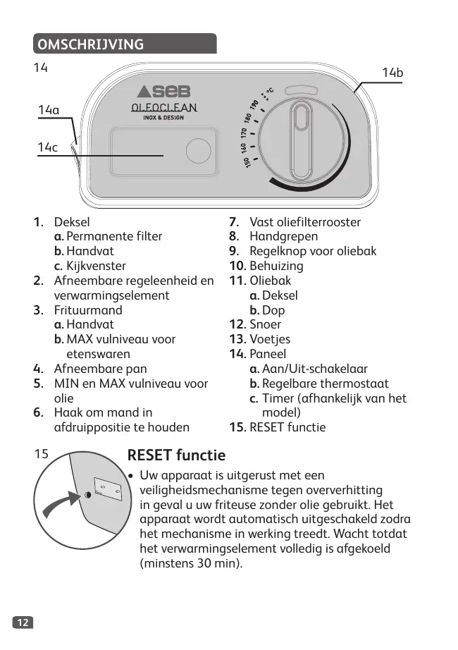 Download de handleiding voor uw Friteuse in PDF-formaat gratis! Vind uw handleiding OLEOCLEAN FR8040 - SEB en neem uw elektronisch apparaat weer in handen. Op deze pagina staan alle documenten die nodig zijn voor het gebruik van uw apparaat. OLEOCLEAN FR8040 van het merk SEB.