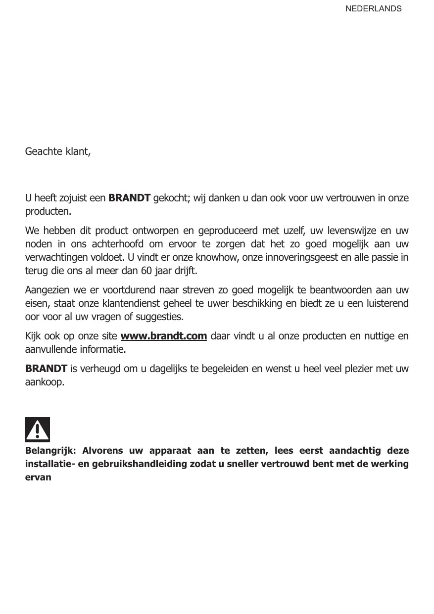 Connectez-vous aussi sur notre site www.brandt.com où vous trouverez nos dernières innovations, ainsi que des informations utiles et complémentaires.