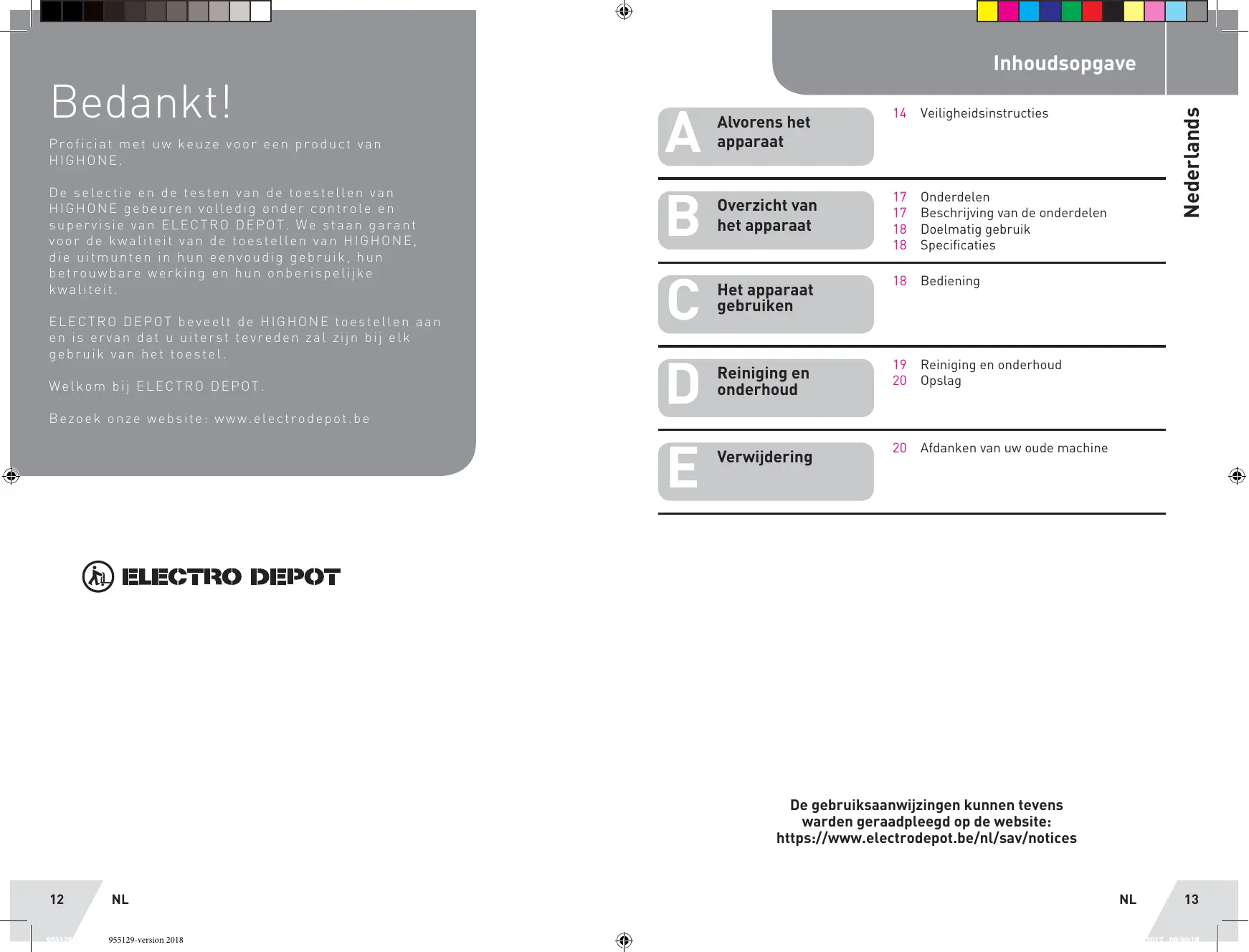 | A | Alvorens het apparaat | 14 | Veiligheidsinstructies |