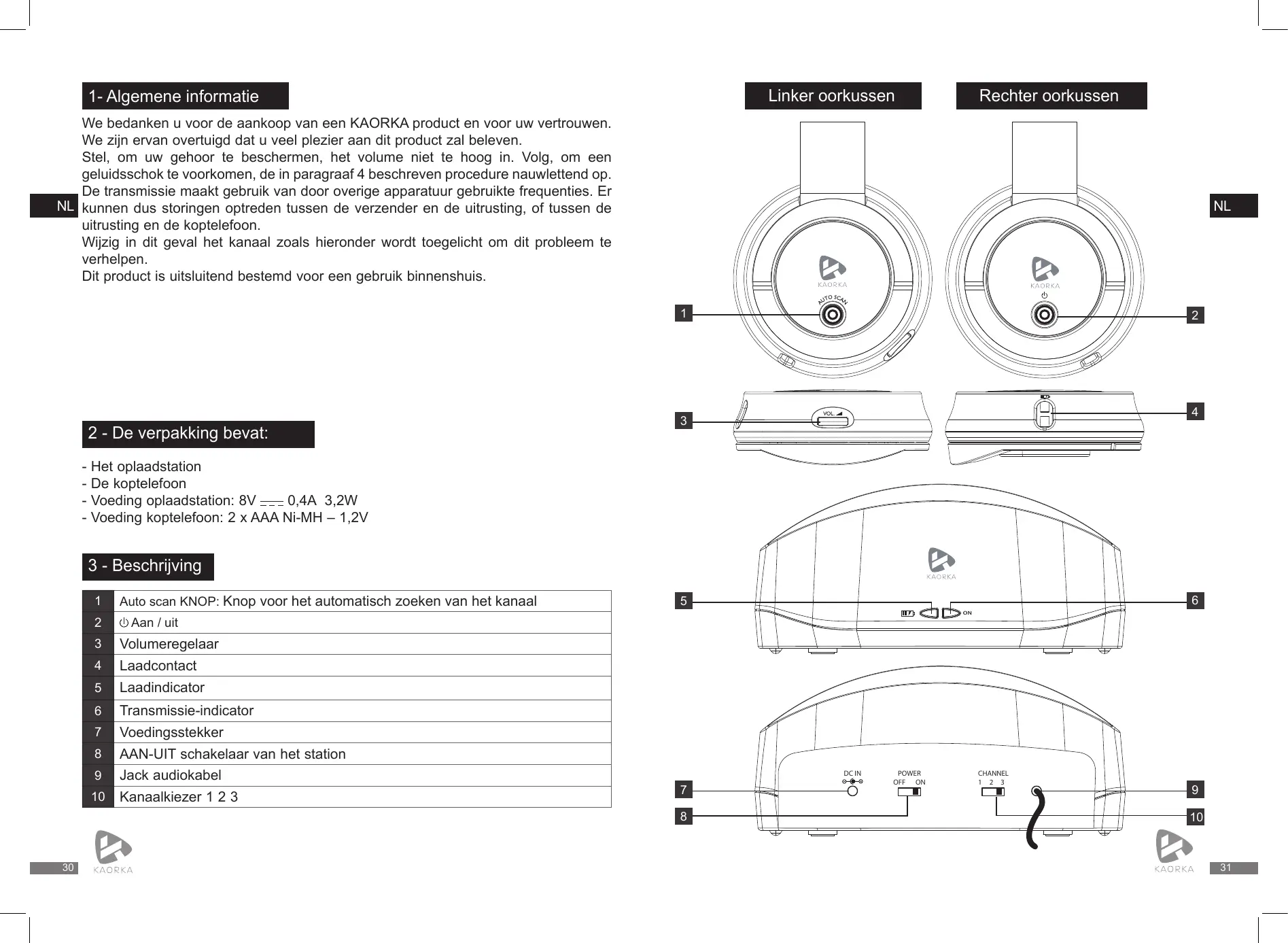 GEBRUIKSAANWIJZING Casque TV Sans Fil noir 474079 KAORKA
