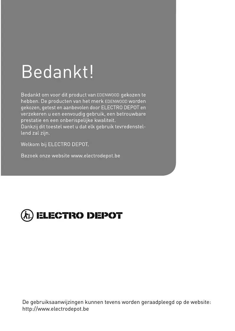 Bedankt om voor dit product van EDENWOOD gekozen te hebben. De producten van het merk EDENWOOD worden gekozen, getest en aanbevolen door ELECTRO DEPOT en