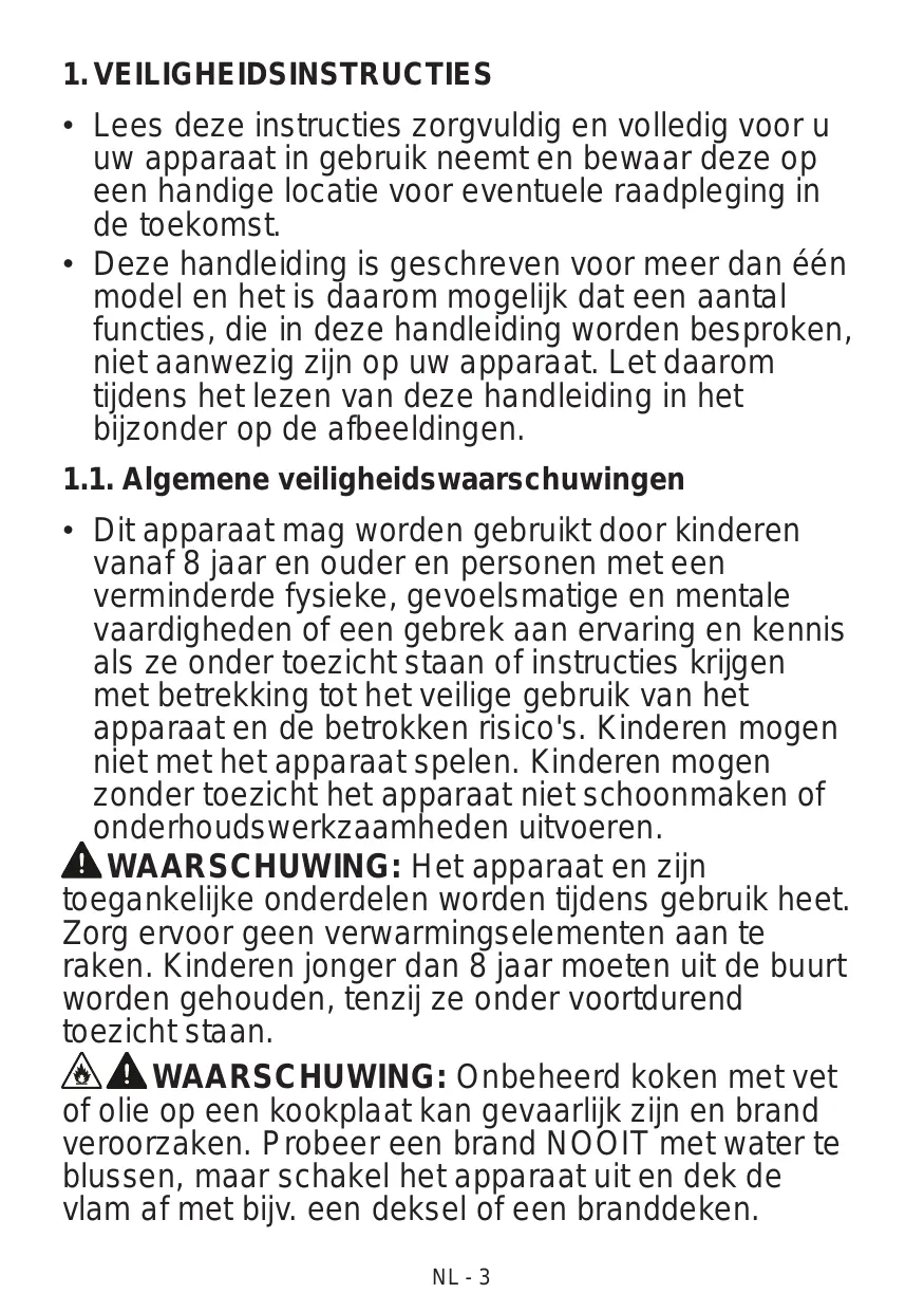 AMISE EN GARDE : Laisser cuire des aliments sans surveillance sur une table de cuisson en utilisant des matières grasses ou de l'huile peut être dangereux et déclencher un incendie. NE J AMAIS essayer d'éteindre un incendie avec de l'eau, mais arrêter l'appareil puis couvrir les flammes par exemple avec un couvercle ou une couverture anti-feu.
