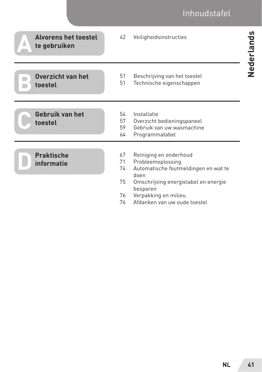 GEBRUIKSAANWIJZING WM 912 A+++ W701T BELLAVITA
