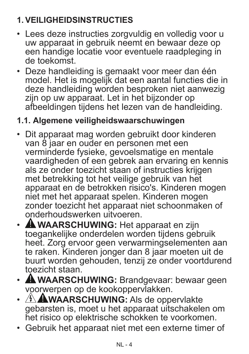 ATTENTION : Cet appareil sert uniquement à des fins de cuisson et est destiné uniquement à un usgae domestique. Il ne doit pas être utilisé à d’autres fins, par exemple le chauffage du local, ou un usage commercial.
