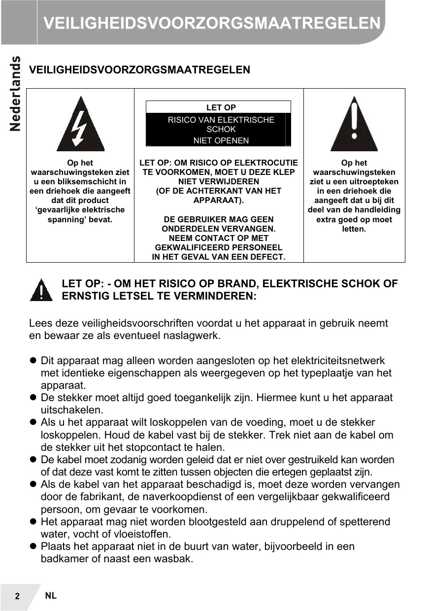 © Ne placez pas l'appareil à proximité de l'eau, par exemple dans une salle de bain ou près d’un lavabo.