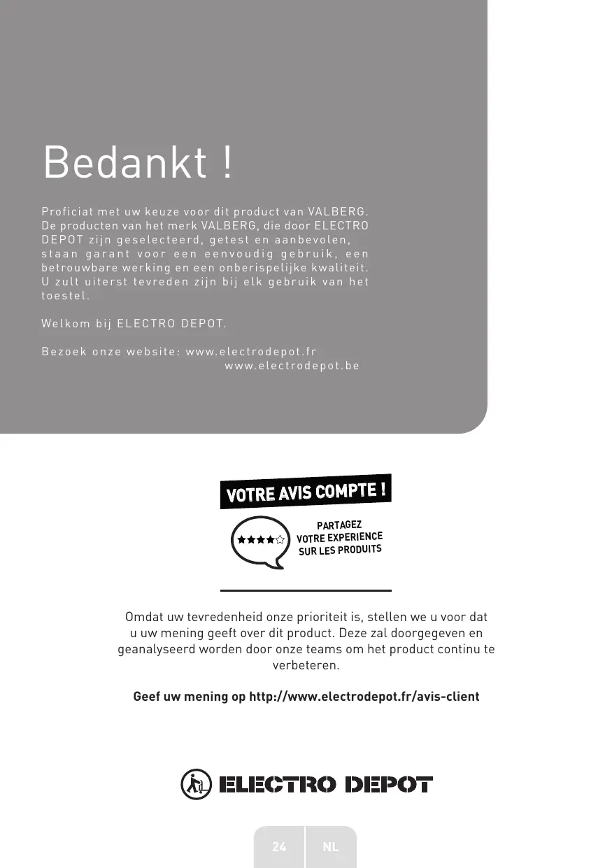 Visitez notre site Internet : www.electrodepot.fr www.electrodepot.be