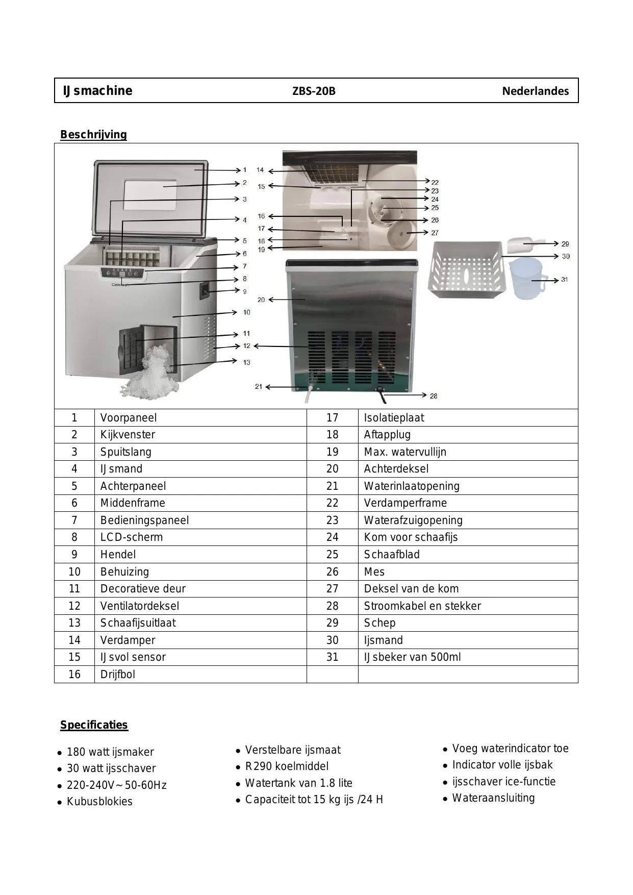 | 15 | IJsvol sensor | 31 | IJsbeker van 500ml |