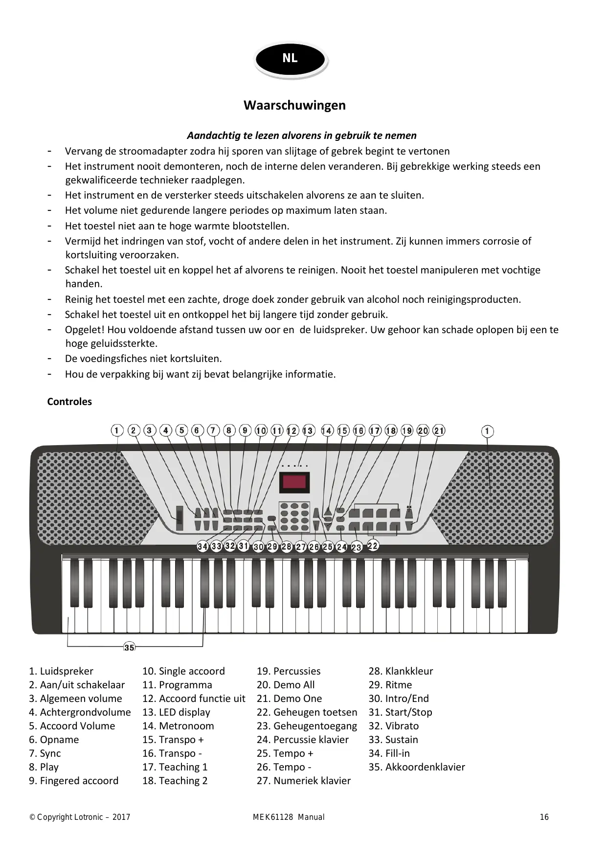 © Copyright Lotronic - 2017 MEK61128 Manual 7