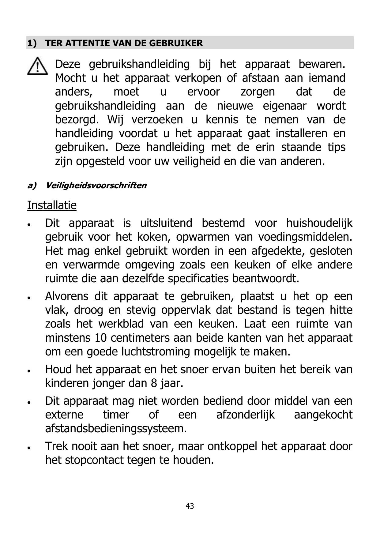 Cet appareil n'est pas destiné à un autre usage que celui de cuire ou réchauffer des aliments. Le séchage d'aliments, de serviettes, le réchauffage de serviettes humides où toute autre utilisation similaire peut entrainer un risque d'incendie ou des blessures.