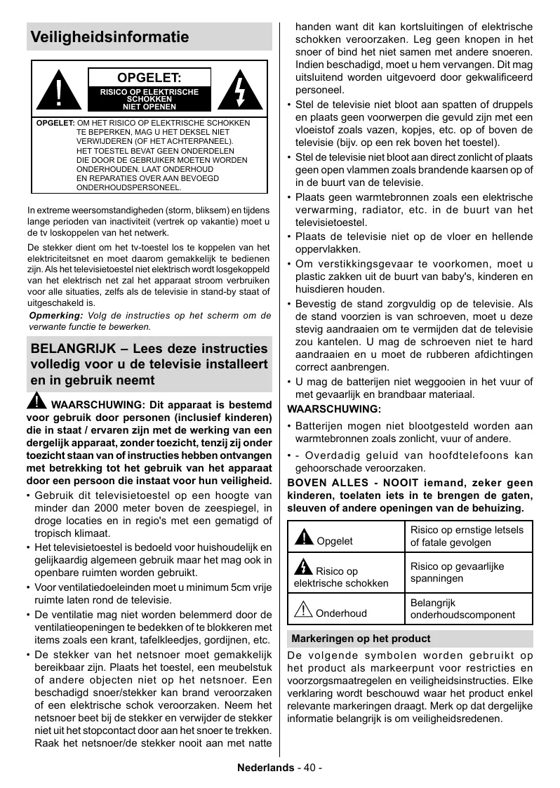 BELANGRIJK -— Lees deze volledig voor u de televi en in gebruik neemt