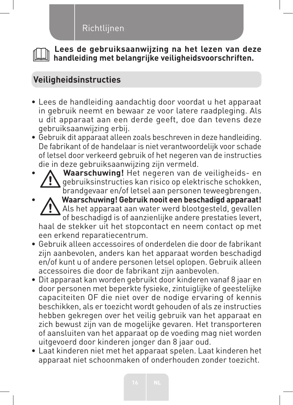 - Avertissement ! Des parties de cet appareil peuvent devenir très chaudes et causer des brûlures. Assurez-vous que Les enfants ou personnes aux capacités physiques, sensorielles ou mentales réduites soient surveillés et protégés de toute brûlure accidentelle. Afin d'éviter toute blessure ou brûlure, ne touchez pas directement Le radiateur. Utilisez des gants ou tout autre accessoire adéquat.