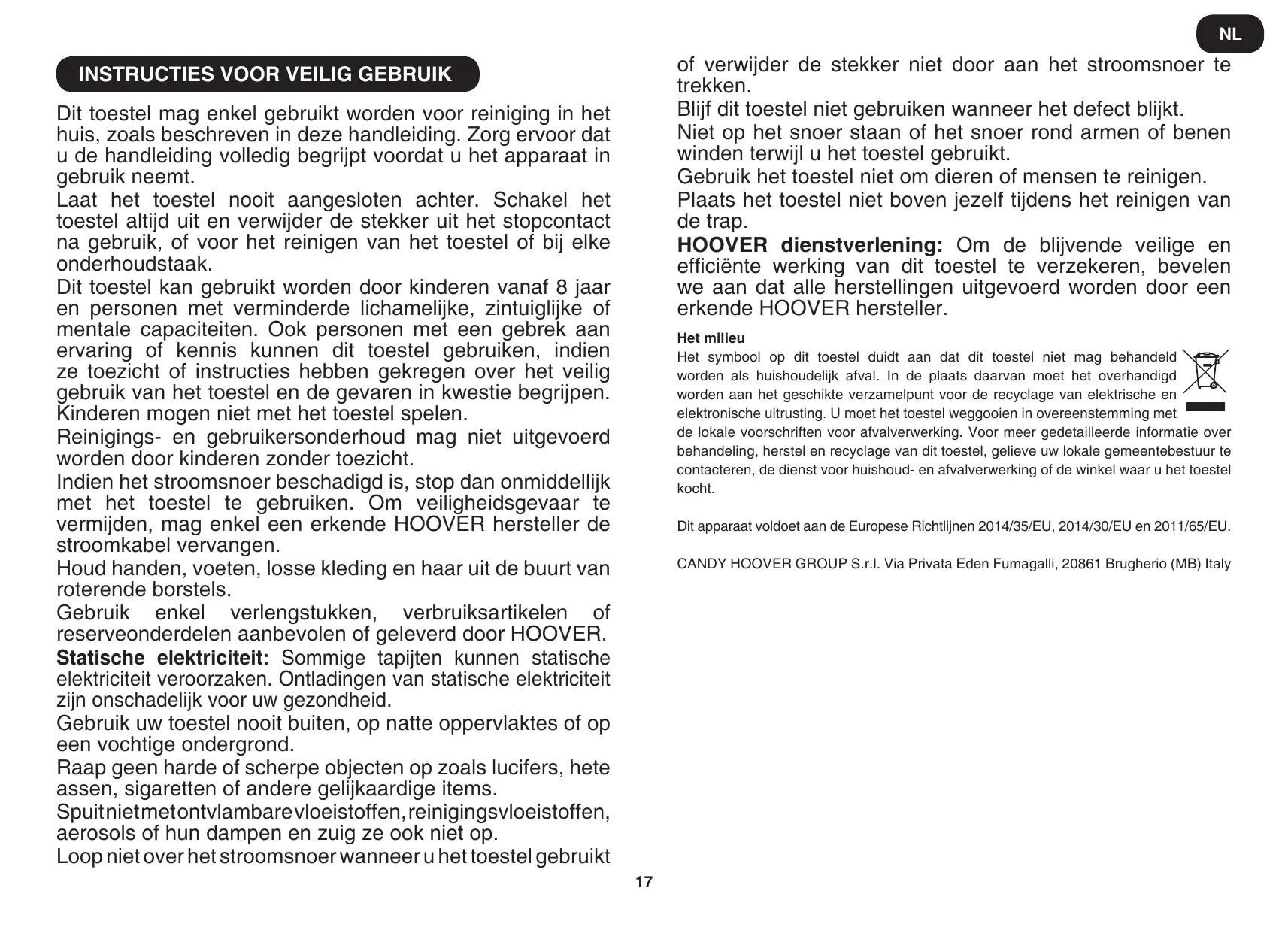 Service HOOVER : Pour assurer l’utilisation sûre et efficace de cet appareil, nous recommandons de n'en confier l'entretien ou les réparations qu’à un réparateur HOOVER agréé.