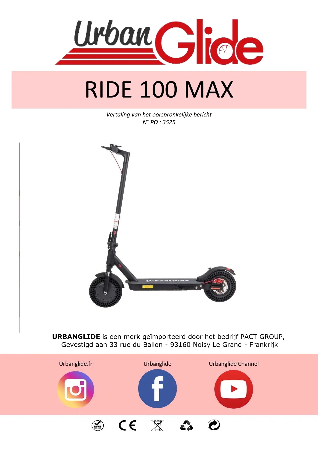 Download de handleiding voor uw Elektrische step in PDF-formaat gratis! Vind uw handleiding 100 XS Max - URBANGLIDE en neem uw elektronisch apparaat weer in handen. Op deze pagina staan alle documenten die nodig zijn voor het gebruik van uw apparaat. 100 XS Max van het merk URBANGLIDE.