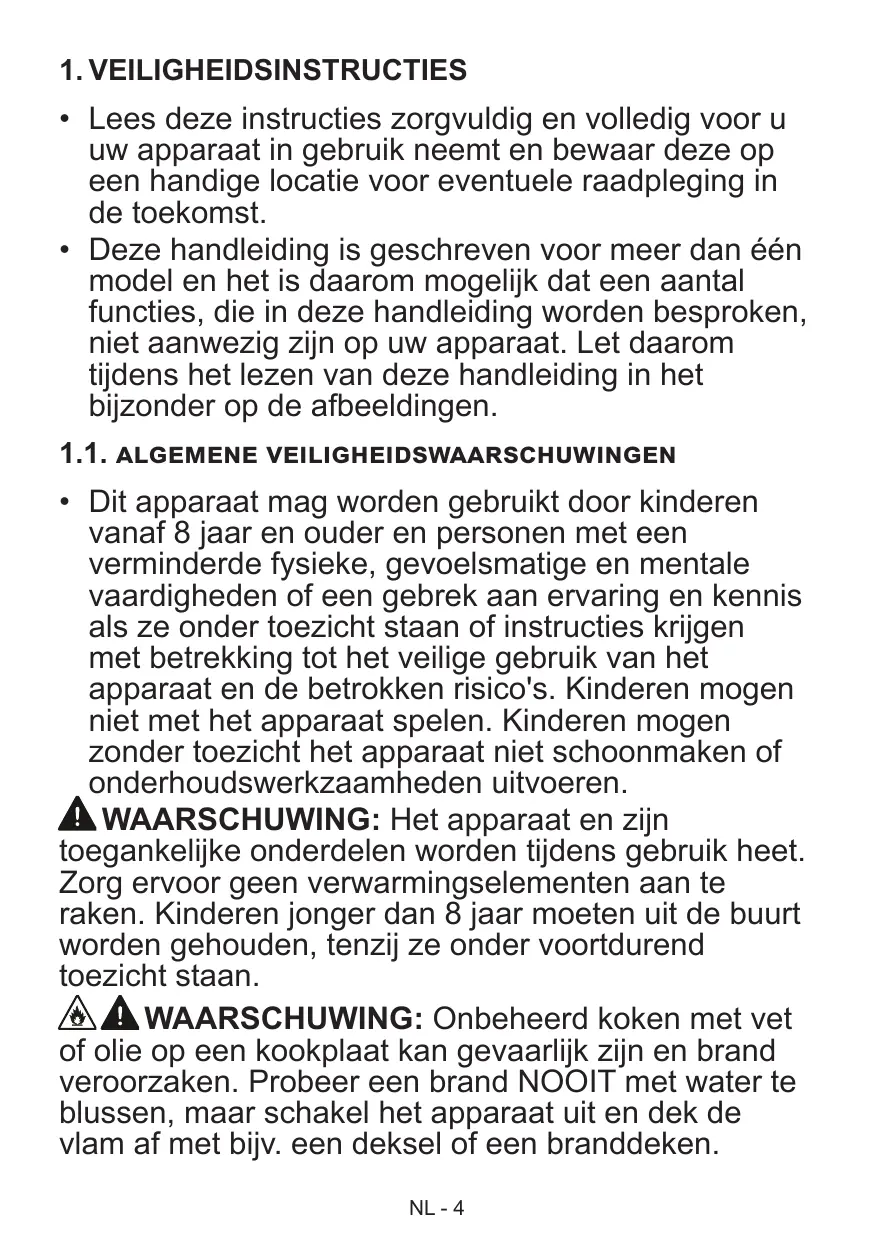 ÂA\MISE EN GARDE : Laisser cuire des aliments sans surveillance sur une table de cuisson en utilisant des matières grasses ou de l'huile peut être dangereux et déclencher un incendie. NE JAMAIS essayer d'éteindre un incendie avec de l'eau, mais arrêter l'appareil puis couvrir les flammes par exemple avec un couvercle ou une couverture anti-feu.