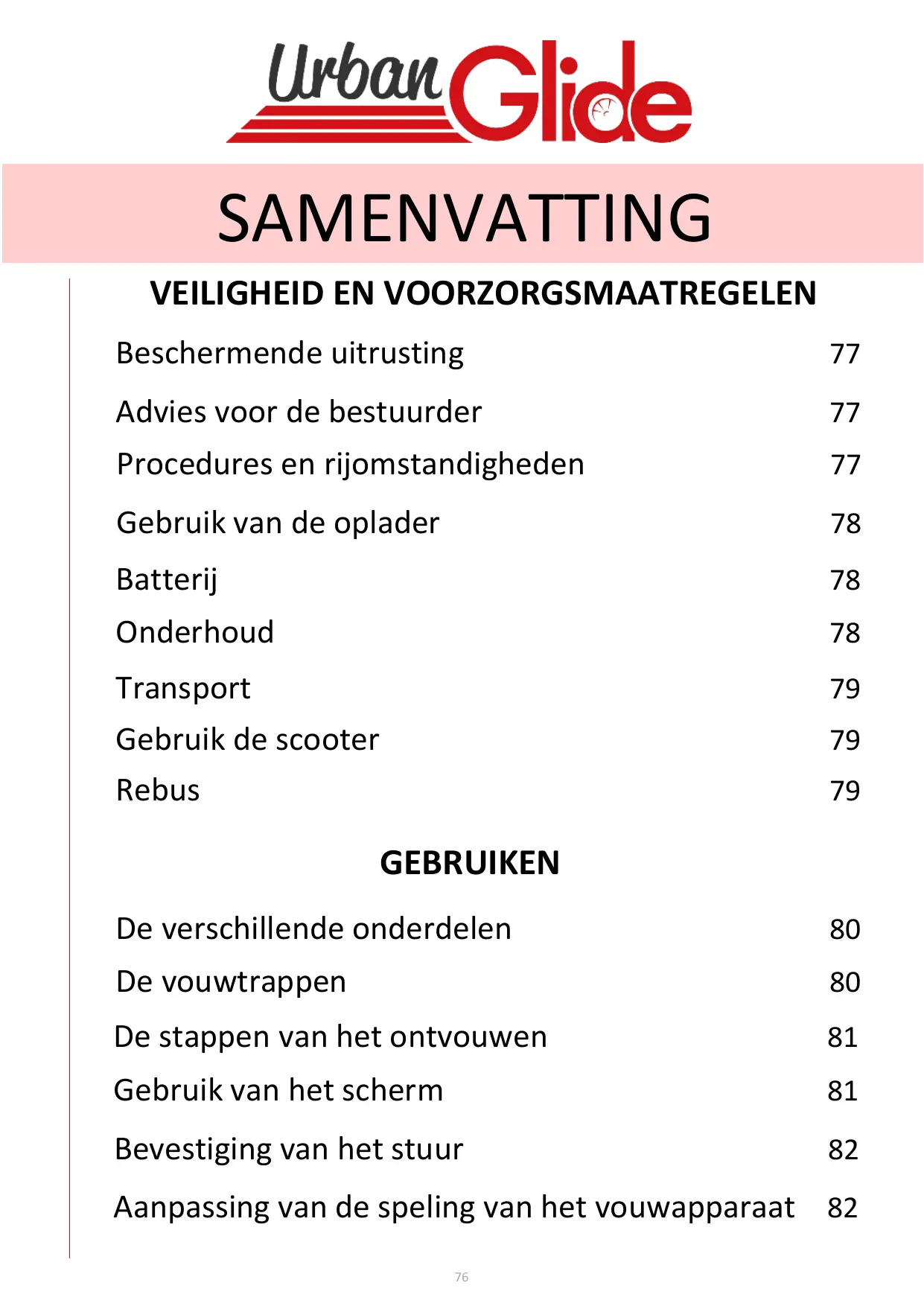GEBRUIKSAANWIJZING RIDE 85+ URBANGLIDE