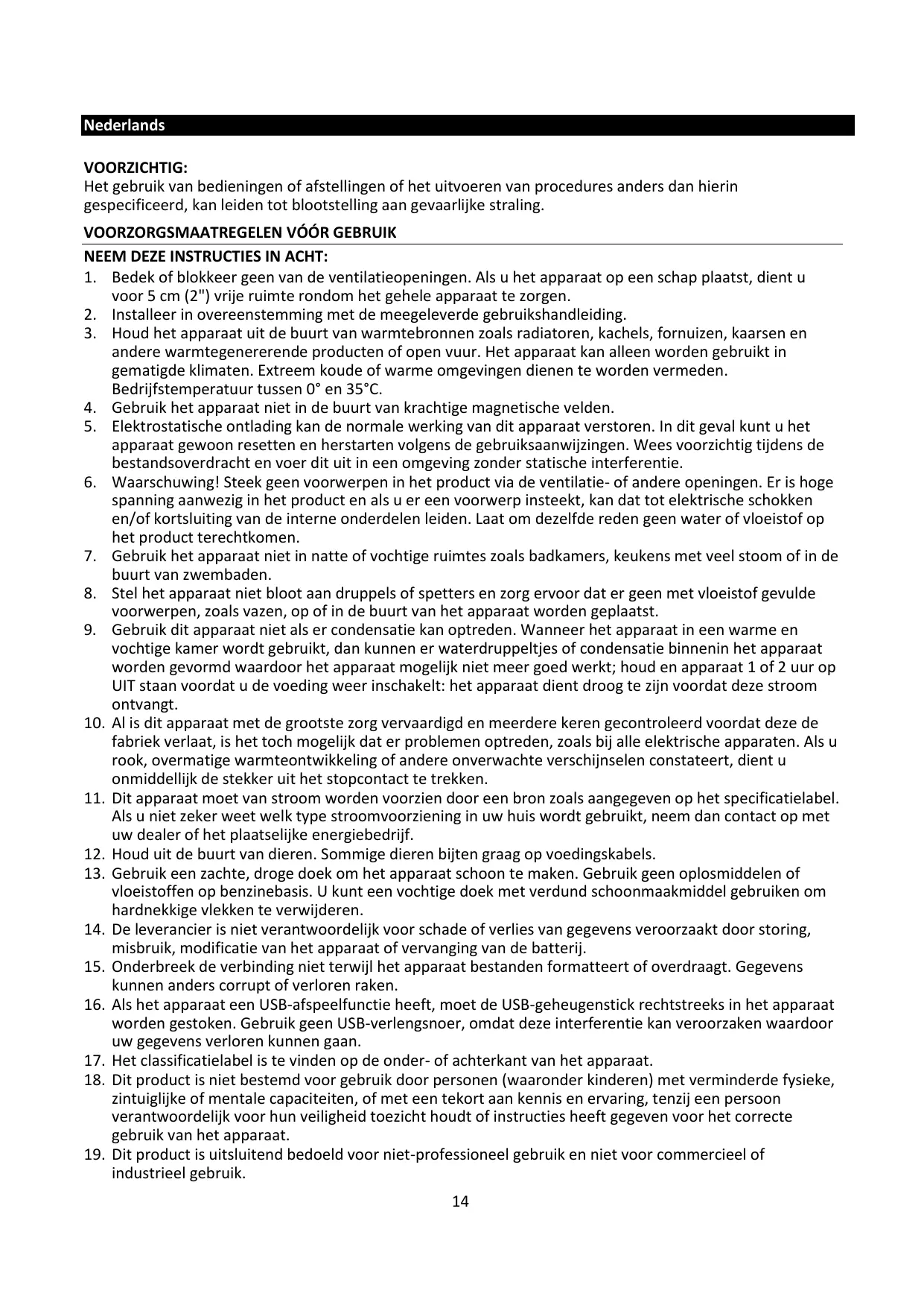 19. Cet appareil est réservé à un usage non professionnel, et non pas à un usage commercial ou industriel.