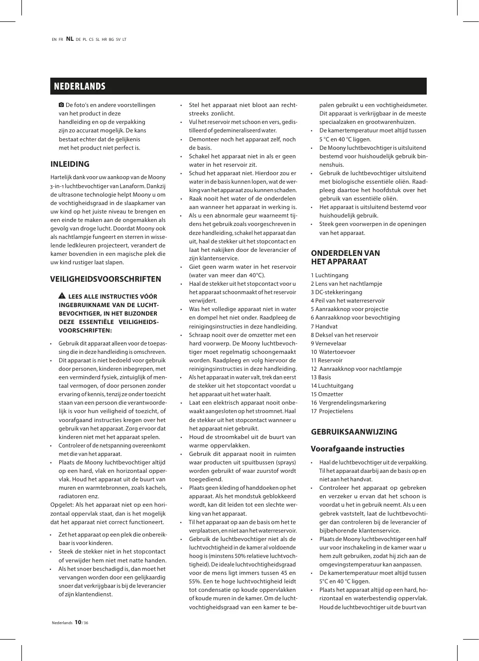 GEBRUIKSAANWIJZING 3 en 1 MOONY LANAFORM