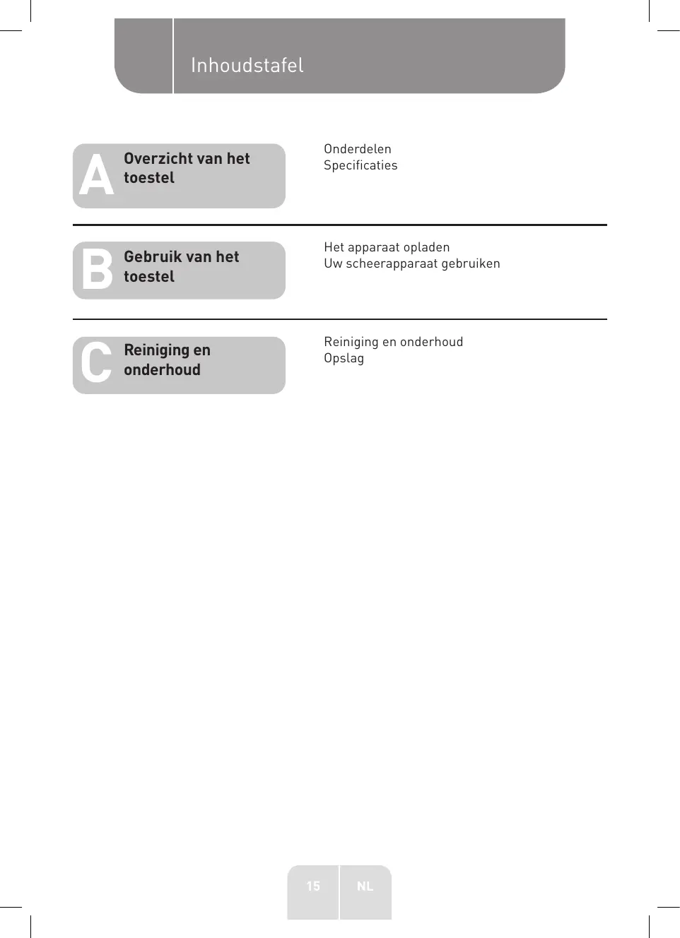 Volg de onderstaande veiligheidsmaatregelen op om uw scheerapparaat veilig te kunnen gebruiken. Als u deze stappen nicht volgt, kan dit de levensduur van uw scheerapparaat verkorten en möglichk persoonlijk letsel of letselveroorzaken.