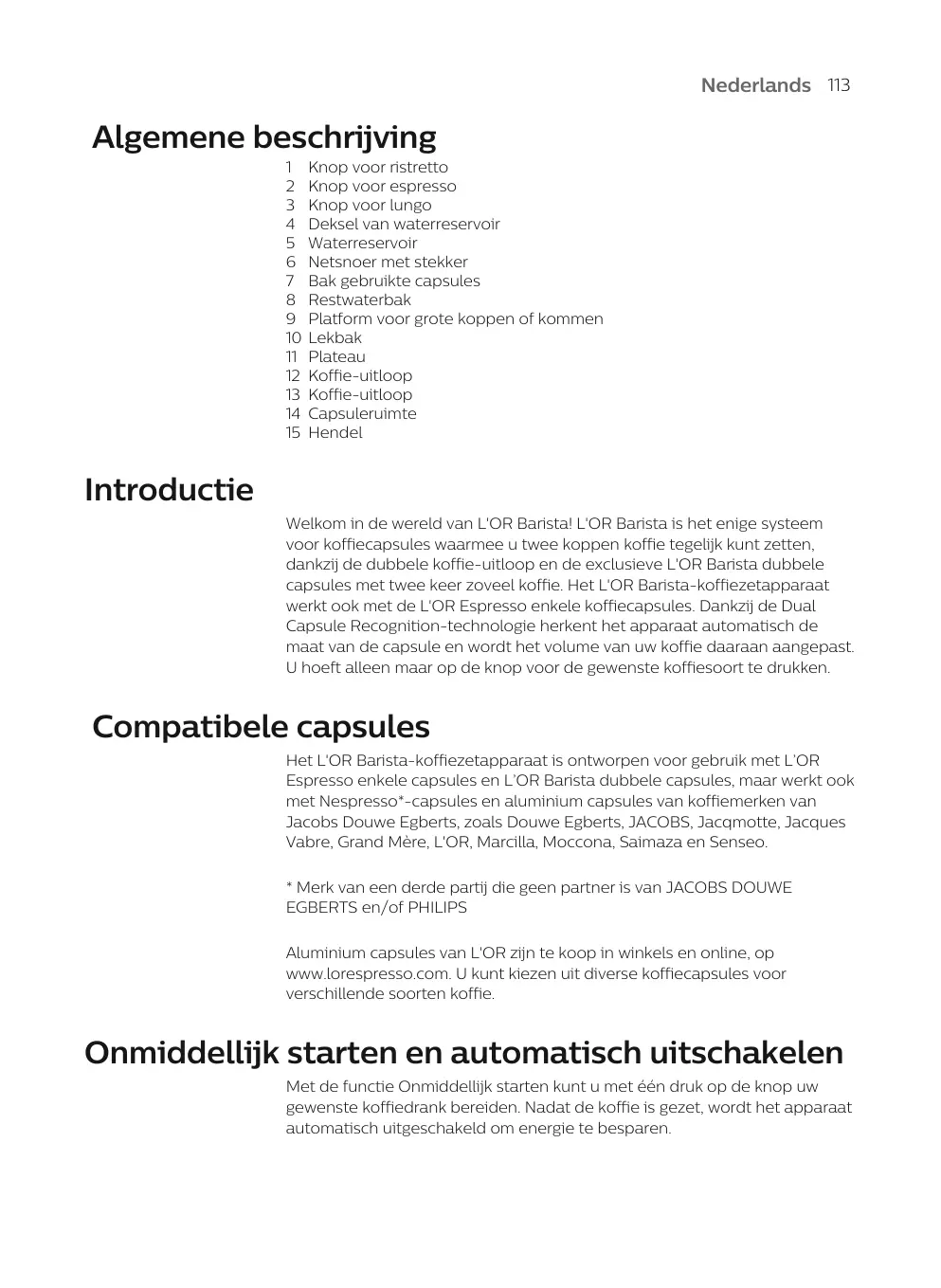 La machine à café L'OR Barista est conçue pour fonctionner avec les capsules simple dose L'OR Espresso et les capsules double dose L'OR Barista, ainsi qu'avec les capsules Nespresso” et les capsules en aluminium de marques de café produites par Jacobs Douwe Egberts, tels que Douwe