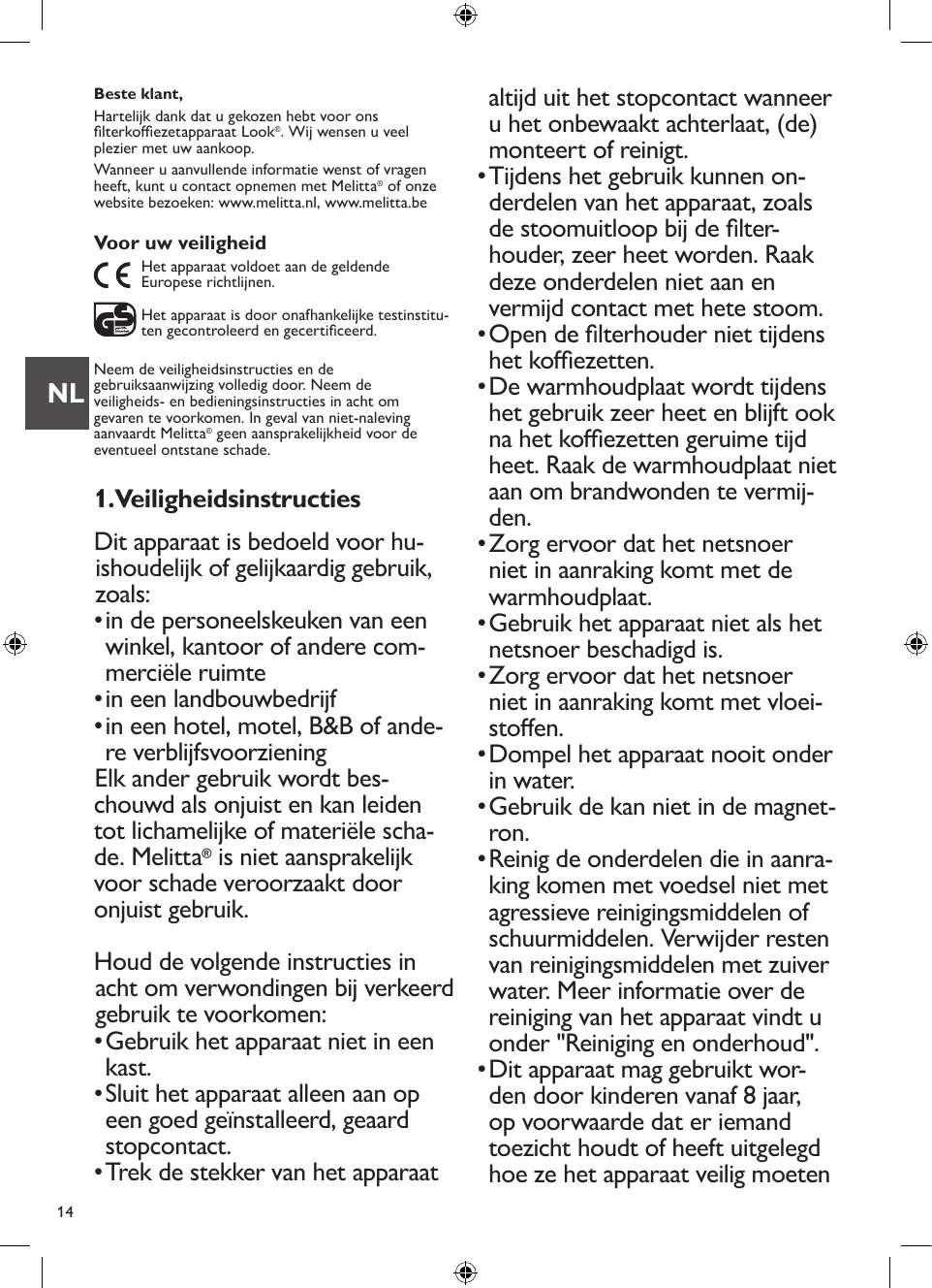 Veuillez lire les consignes de sécurité et le mode d'emploi dans leur intégralité. Afin d'éviter tout danger, respectez les consignes de sécurité ainsi que le mode d'emploi. Melitta® décline toute responsabilité en cas de dommages résultant d'un non-respect des consignes.