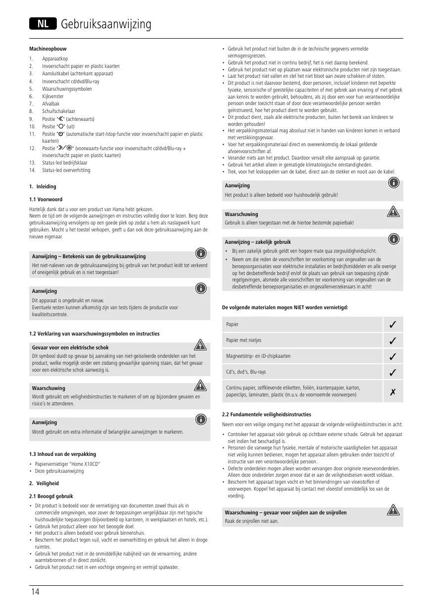 Home X10CD - Documentvernietiger HAMA - Gratis gebruiksaanwijzing en handleiding