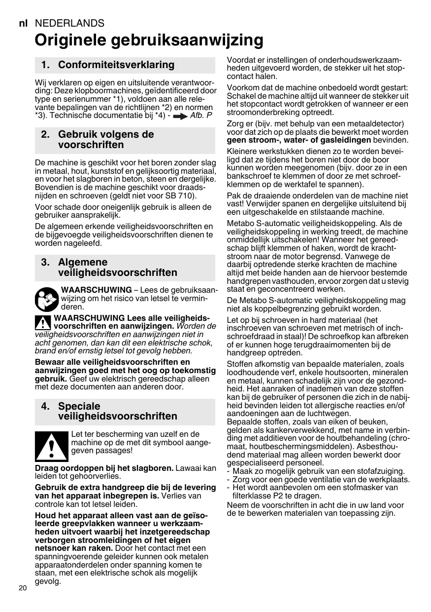 GEBRUIKSAANWIJZING SB 710 SBE 701 SP SBE 710 SBE 730 SBE 751 SBE 850 SBE 900 Impuls SBE 1000 SBE 1100 Plus SBE 1300 METABO