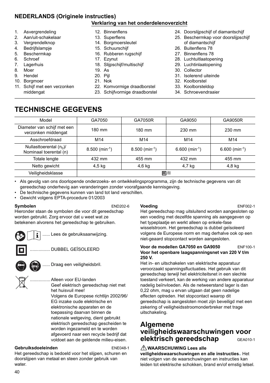 GEBRUIKSAANWIJZING GA7050 GA7050R GA9050 GA9050R MAKITA