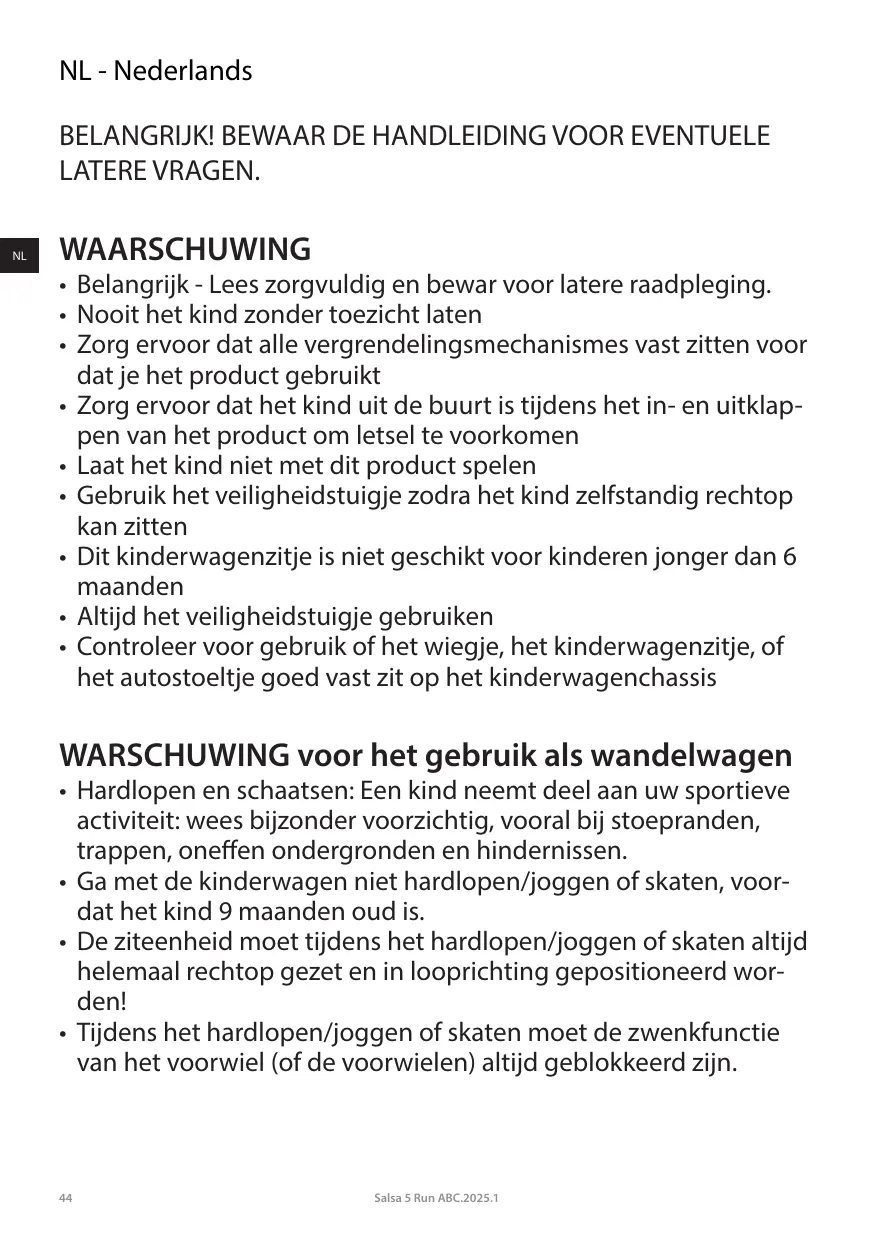 GEBRUIKSAANWIJZING SALSA 5 RUN ABC DESIGN