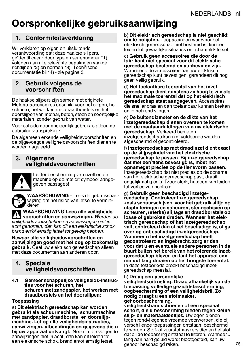 GEBRUIKSAANWIJZING W 1100-115 W 1100-125 W 1150-125 WP 1200-115 RT WP 1200-125 RT WE 1500-125 RT WE 1500-150 RT WEV 1500-125 RT WEV 1500-125 Quick RT METABO