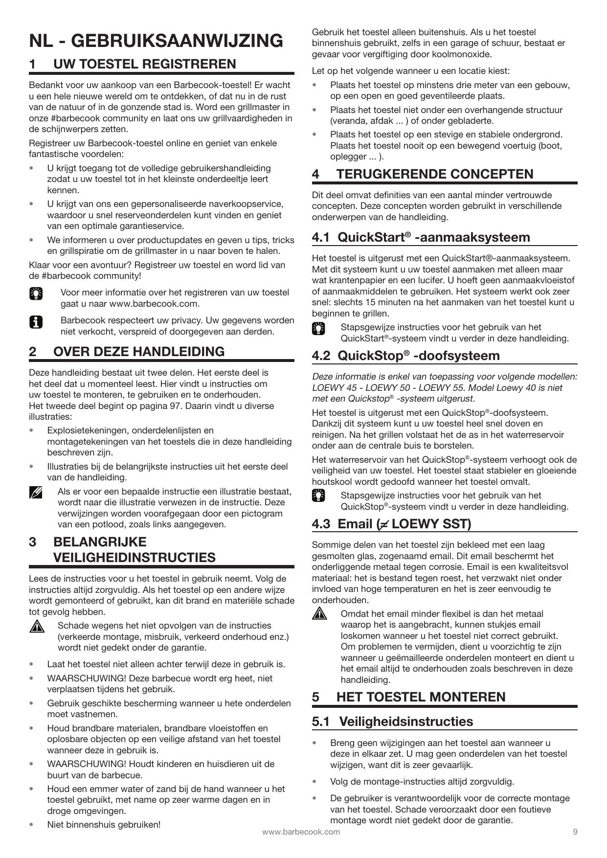 GEBRUIKSAANWIJZING LOEWY 40, LOEWY 45, LOEWY 50 / 50 SST, LOEWY 55 / 55 SST BARBECOOK