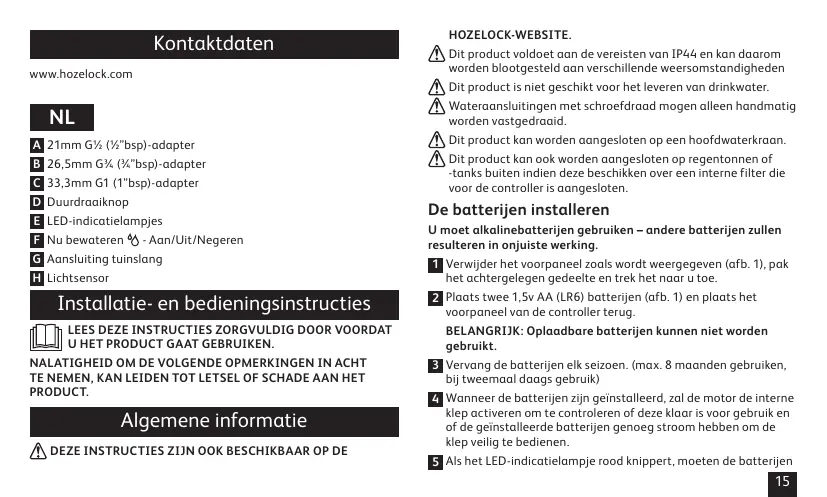 GEBRUIKSAANWIJZING SENSOR, 1 VOIES - 2212 HOZELOCK
